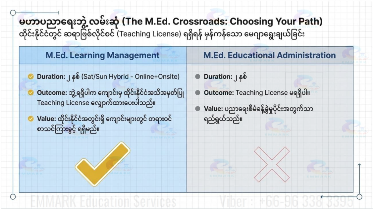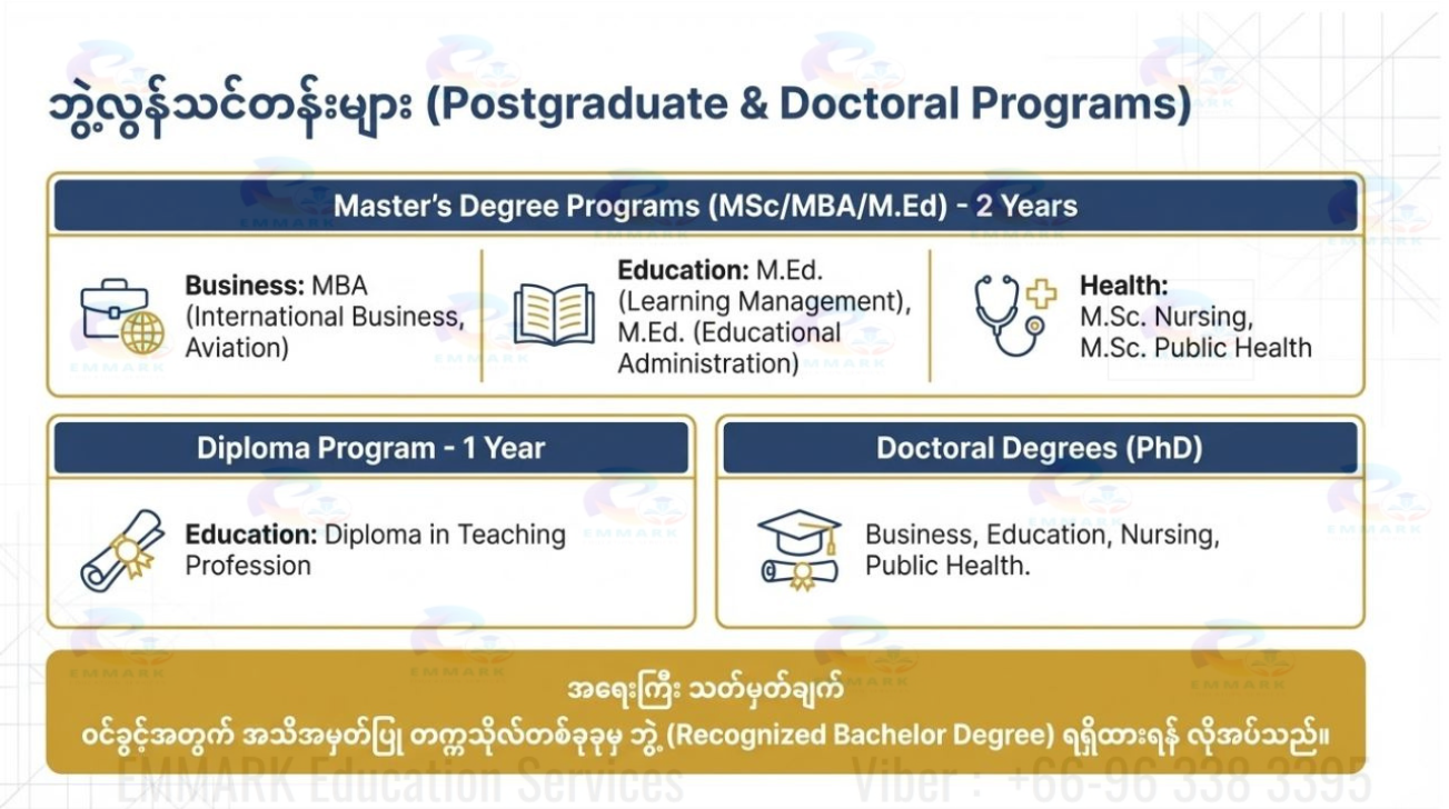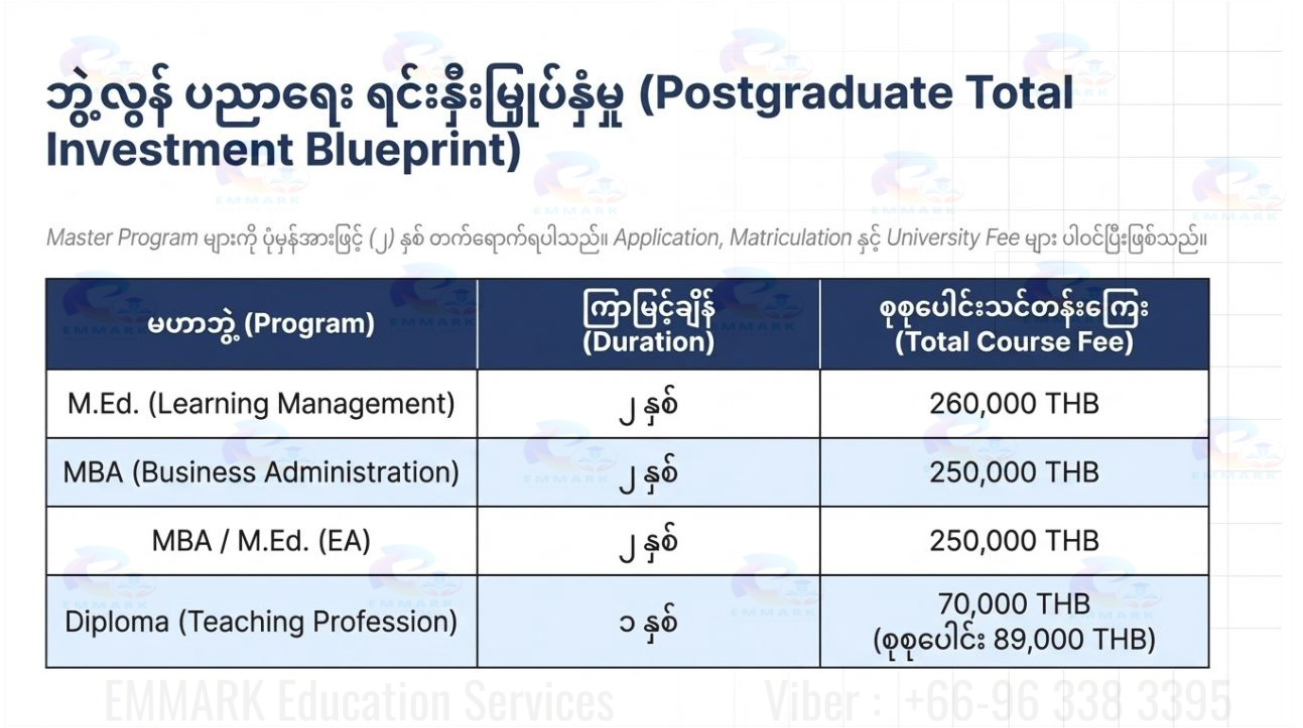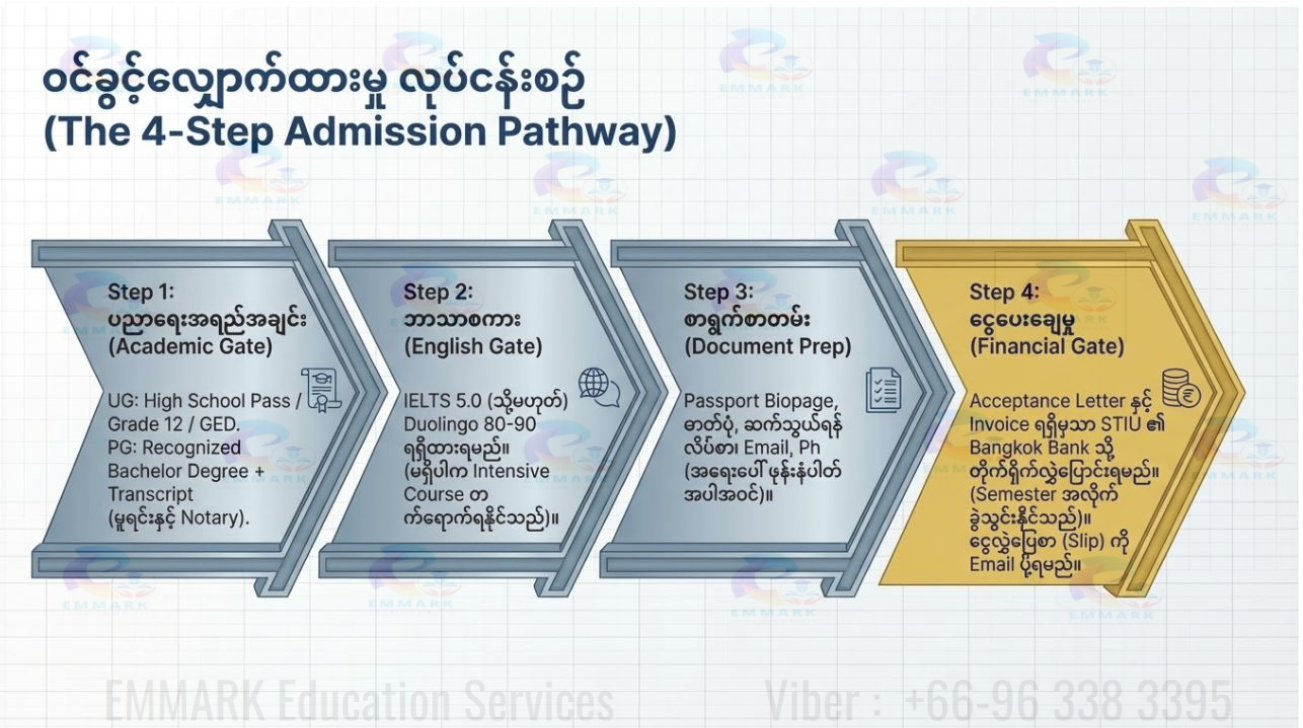Our commitment is to meticulously identify schools that align with the unique requirements of Myanmar students. By doing so, we empower students and parents to make informed choices, ensuring a stress-free selection process.